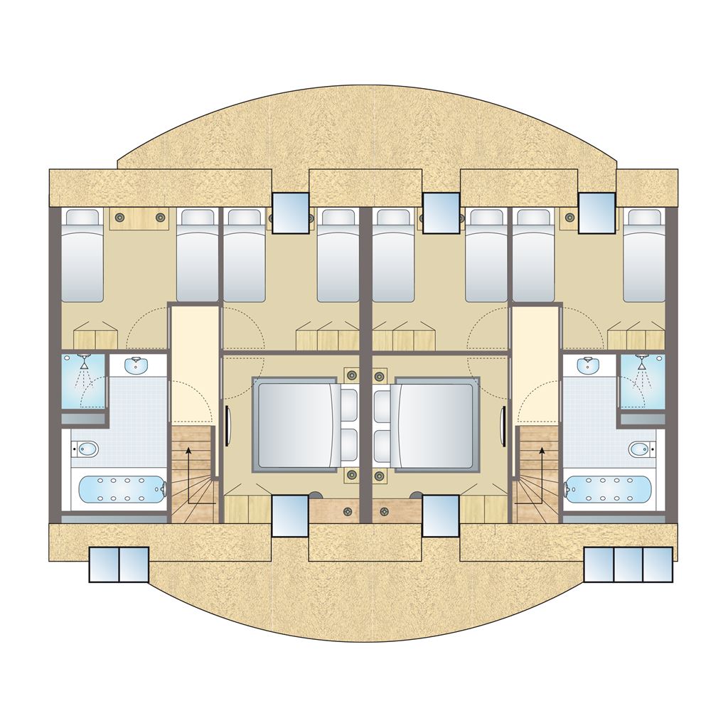 - Vier Schlafzimmer mit jeweils zwei Auping Boxspring-Einzelbetten